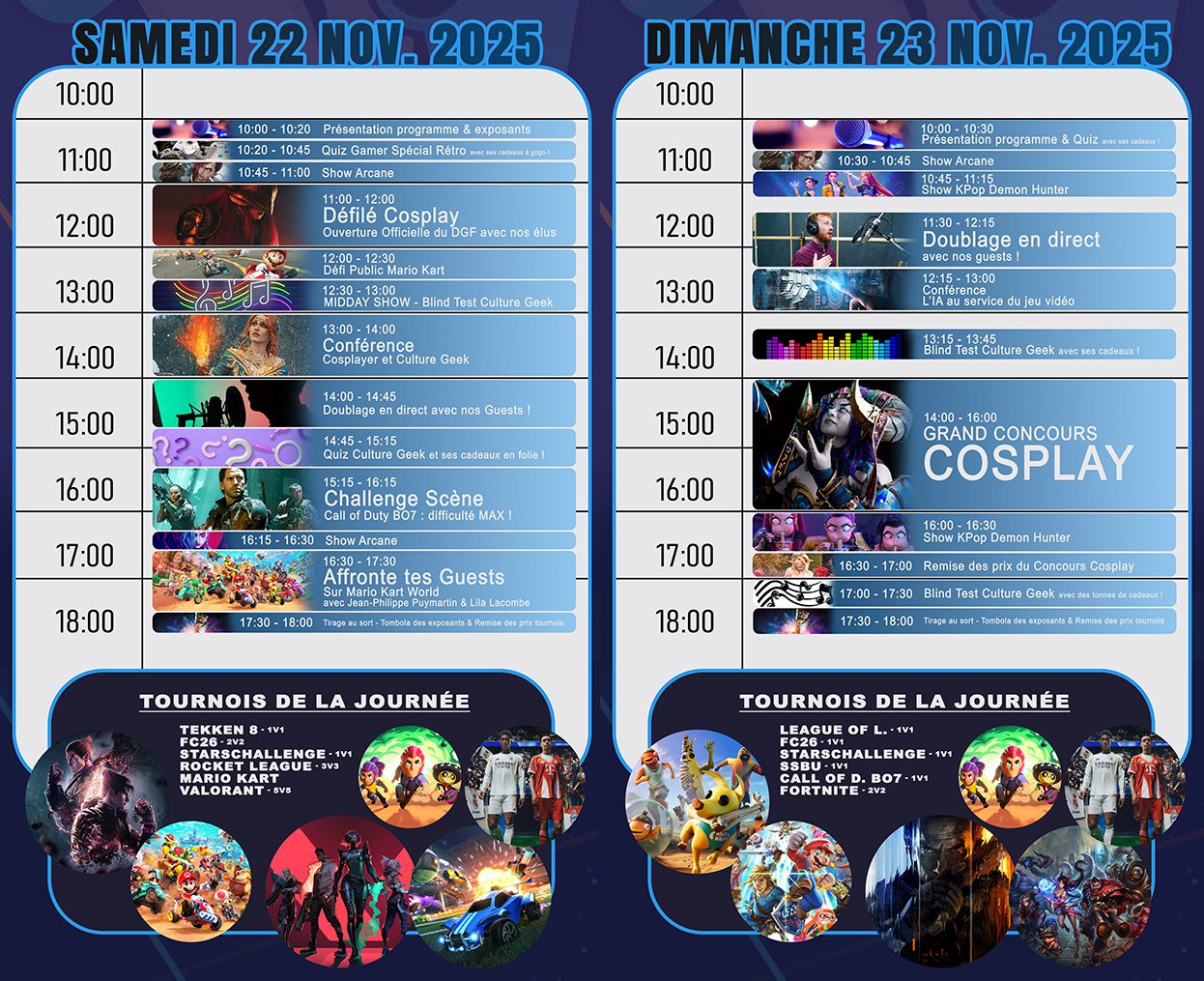 NB : La participation aux tournois nécessite un billet spécifique à acheter sur le site HelloAsso ou à l’accueil.